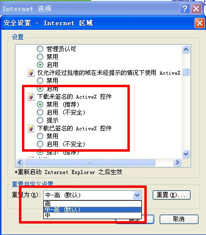 给员工建立职场诚信档案:e浏览器中,点击浏览器右上方导航栏中的工具——internet选项——安全性——自定义级别——启用图中红色框的选项并重置自定义设置为“中”