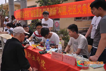 5月16日,由山东经贸职业学院大学生社团联合会、电子爱好者协会、计算机创新服务社共同举办的“诚信服务•科学创新”校园、社区义务维修活动分别在山东经贸职业学院三号公寓北侧与高家楼社区顺利举行。