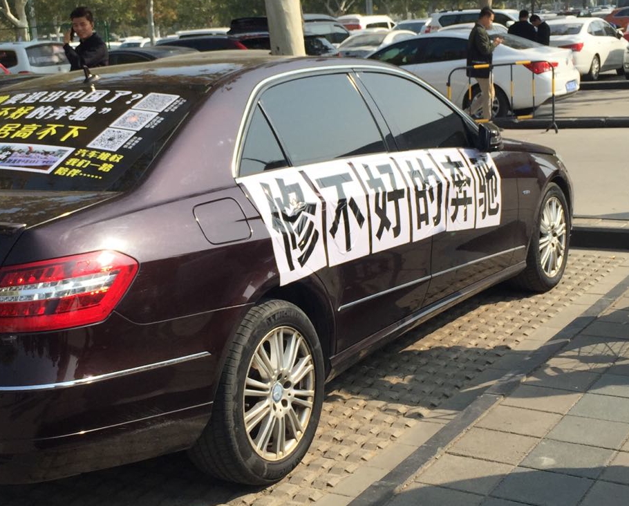 2018年的11月初在郑州国际车展上,奔驰车主愤然在车上贴上了“修不好的奔驰”